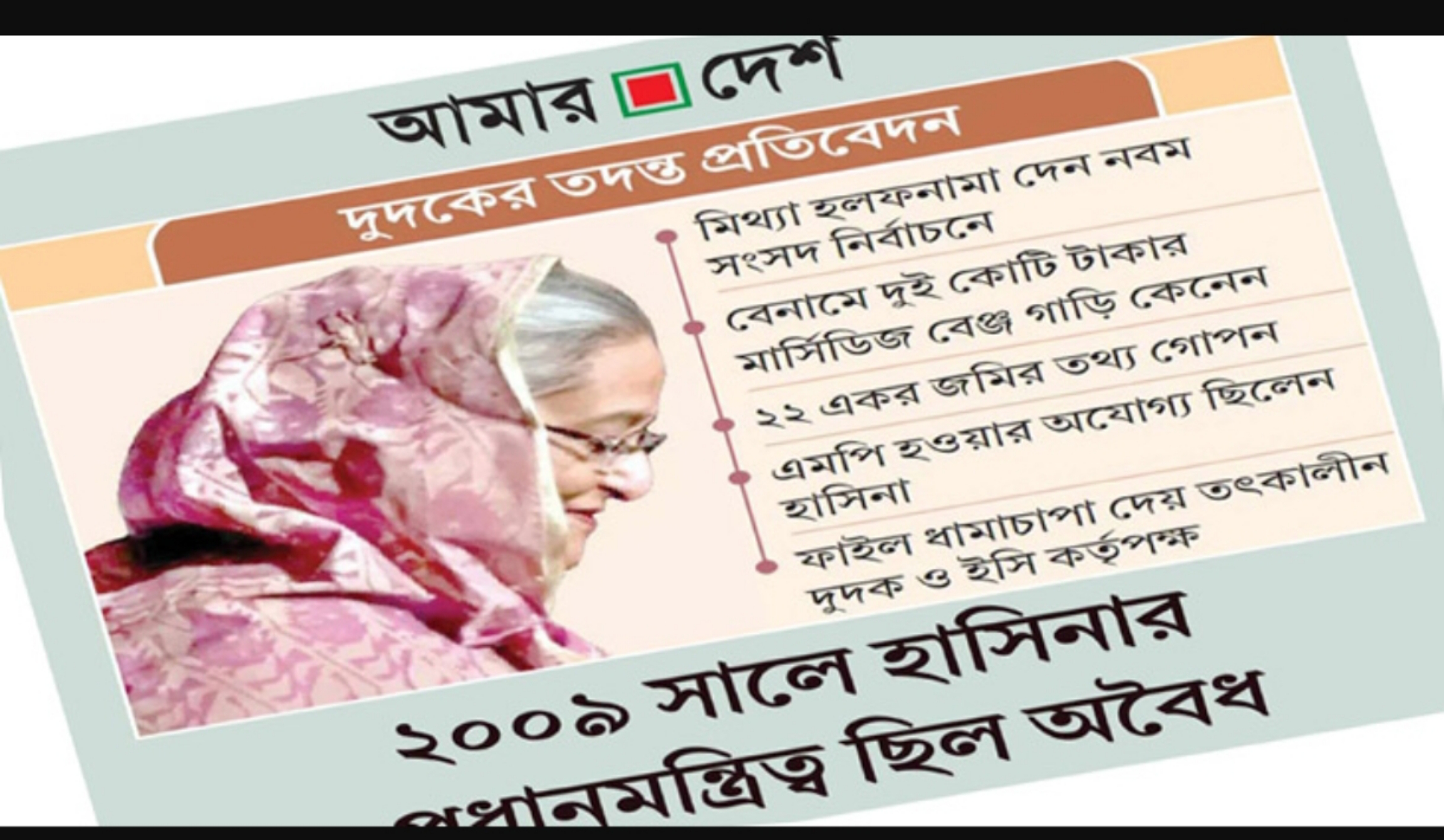 দুদকের তদন্ত প্রতিবেদন ২০০৯ সালে হাসিনার প্রধানমন্ত্রিত্ব ছিল অবৈধ: