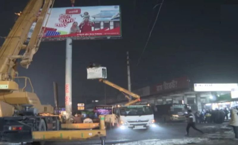 রাজধানীর মহাখালীতে মধ্যরাতে ডিএনসিসির অবৈধ বিলবোর্ড অপসারণ অভিযান: