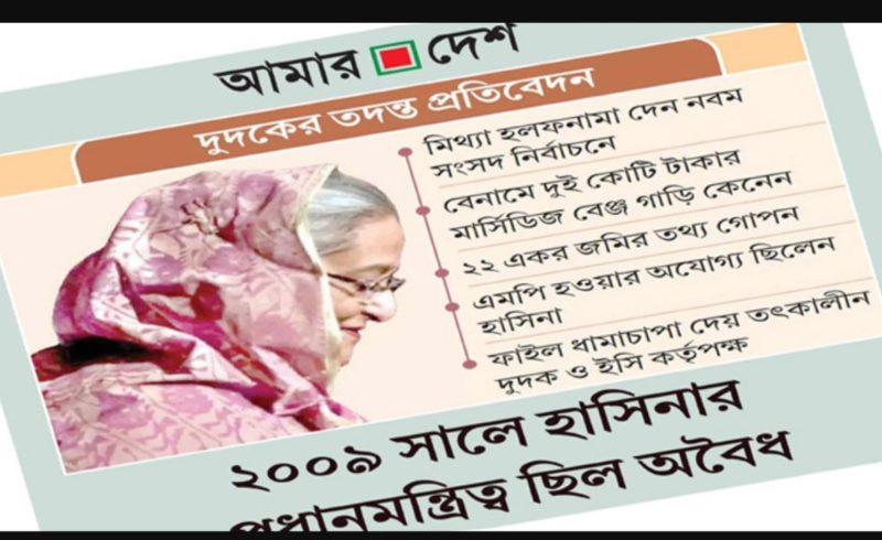 দুদকের তদন্ত প্রতিবেদন ২০০৯ সালে হাসিনার প্রধানমন্ত্রিত্ব ছিল অবৈধ:
